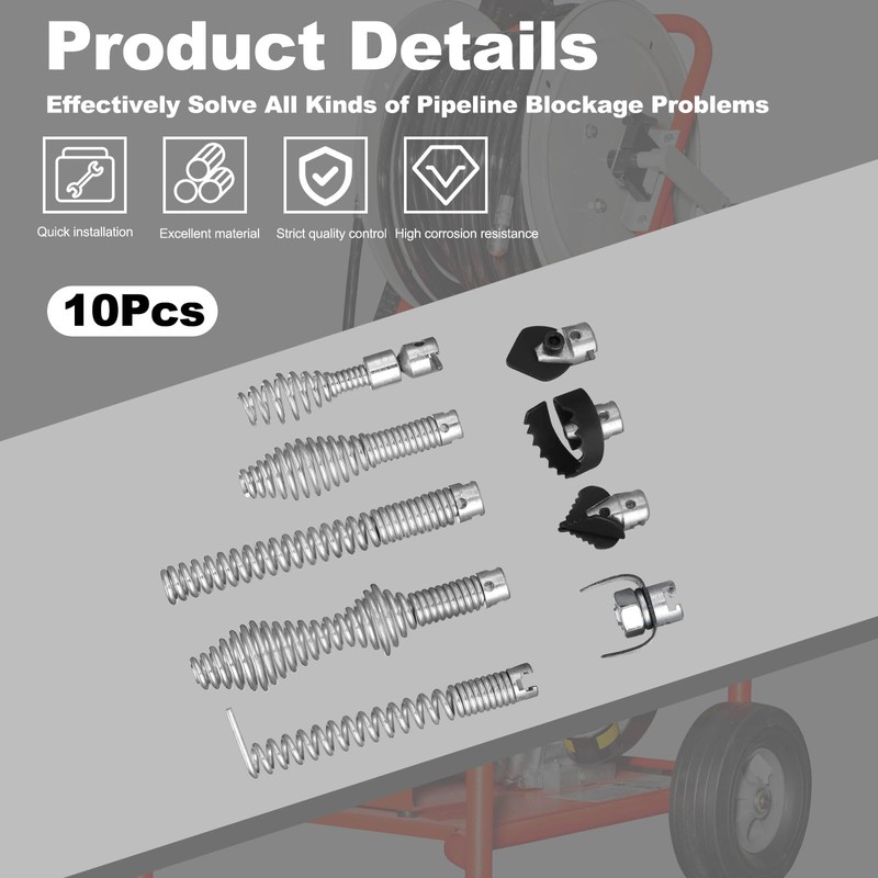 Otoolling 10 Pcs Drain Snake Drill Attachments Drain Auger Cutter Kit for Heavy-duty Cables Professional Tools Compatible with K-400, C-4, C-6, C-7, C-8, and C-9 Models
