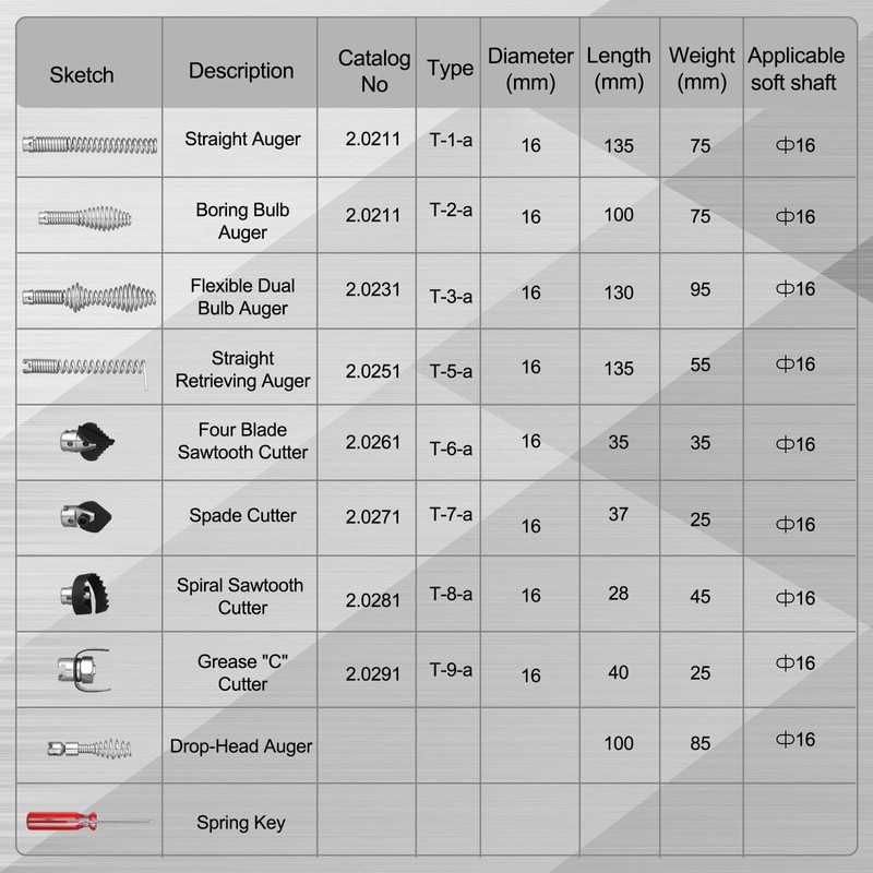 - Package Includes: the package contains 4 cutters, 4 augers, 1 sinking auger and 1 spring wrench, whether it is grease, tree roots or harder debris, different tools can be applied for effective cleaning, providing a comprehensive solution
