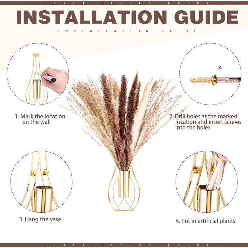 - Ideal Artistic Design: our pampas grass wall decor showcasing a traditional vase shape combined with geometric line motifs, our wall decor merges the functionality of ombining the functions of metal hanging paintings with wall-mounted metal vases, combining the elegance of hanging paintings with the rustic farmhouse style; These pieces highlight your refined taste, blending elegance with artistry to transform any wall into a statement piece