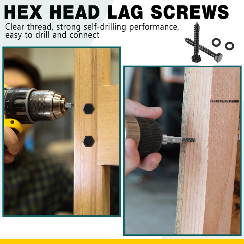 - Enhanced Corrosion Resistance: featuring a galvanized black surface treatment, these lag screws offer improved corrosion and rust resistance, making them suitable for patio construction, outdoor furniture, and other applications exposed to harsh weather