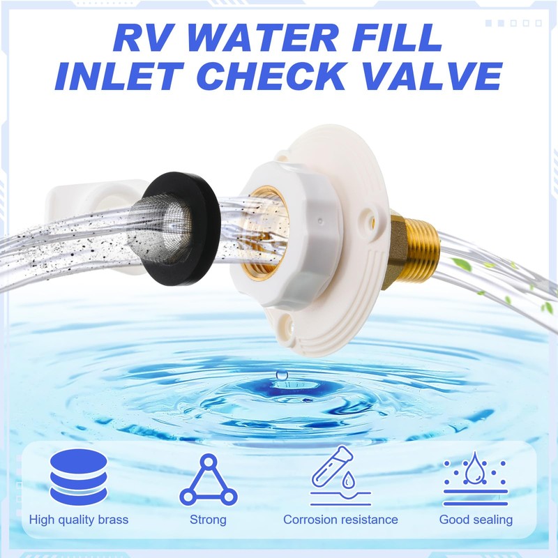 - Complete Package: this product comes with everything required for installation, including an RV water inlet with a built-in check valve to prevent backflow, a 90° solid brass hose elbow for easy connection, PTFE tape for leakproof sealing, a dust cap to protect the inlet when not in use, screws for secure fitting, a rubber ring for enhanced sealing, and two compressed towels to clean any dirt from the threads during installation