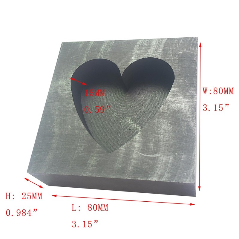 OTOOLWORLD Big Heart Graphite Casting Ingot Mold Metal Refining Scrap Gold Silver Big Heart Mold, black
