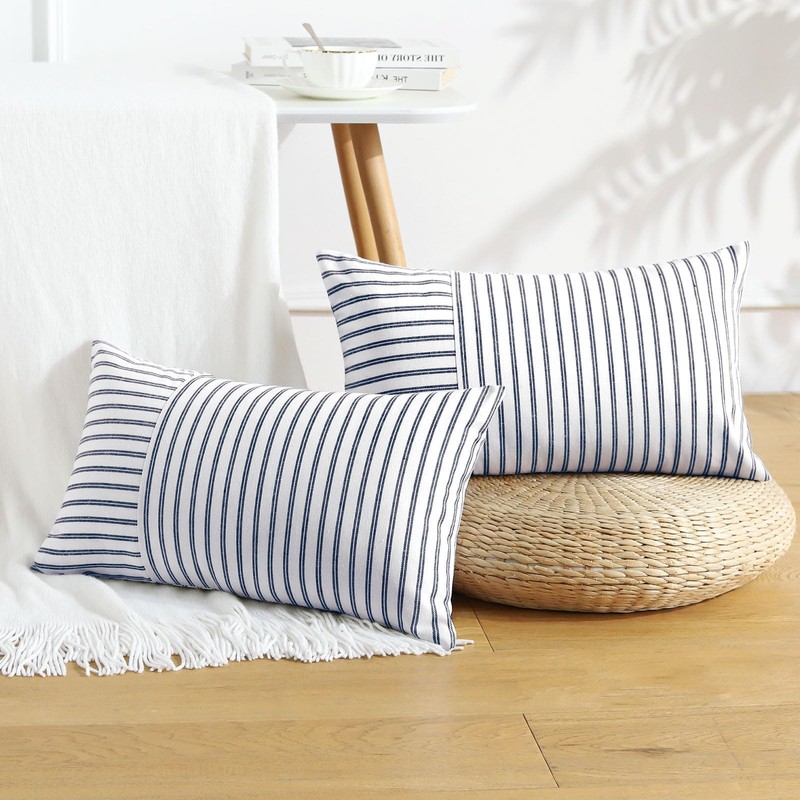 OTOSTAR Farmhouse Decorative Throw Pillow Covers 12 x 20 Inch Striped Patchwork Pillow Covers Lumbar Pillow Case Shell Couch Pillowcase Cushion Cover for Sofa Bed Home Decor Pack of 2 (Stripe Navy)