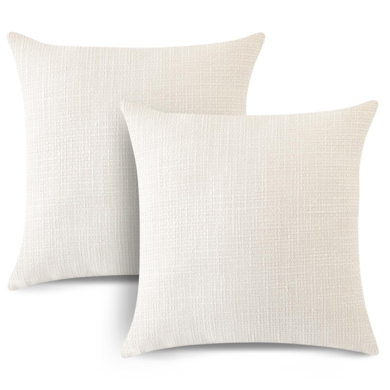 OTOSTAR Linen Throw Pillow Covers Pack of 2 Decorative Square Pillowcases Cushion Covers 12x20 Inch for Home Decor Sofa Bedroom Car 30 x 50CM Cream White/Beige