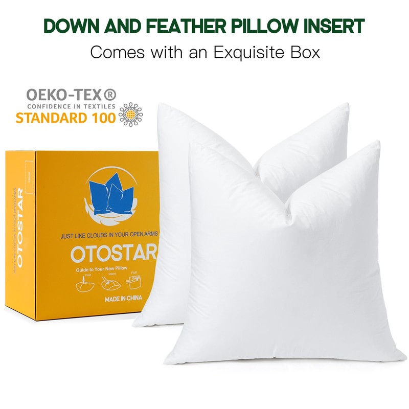 - Multi-purpose: Come with an exquisite box. Set of 2 down and feather throw pillow inserts for your home decoration. Suitable for sofa, living room, bedroom, balcony, garden, farmhouse, patio, kitchen, office, etc