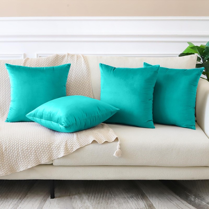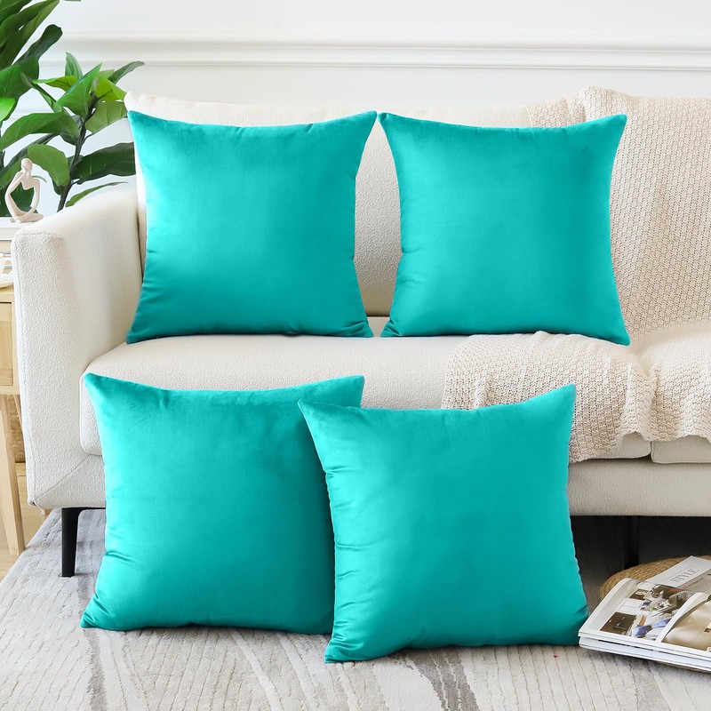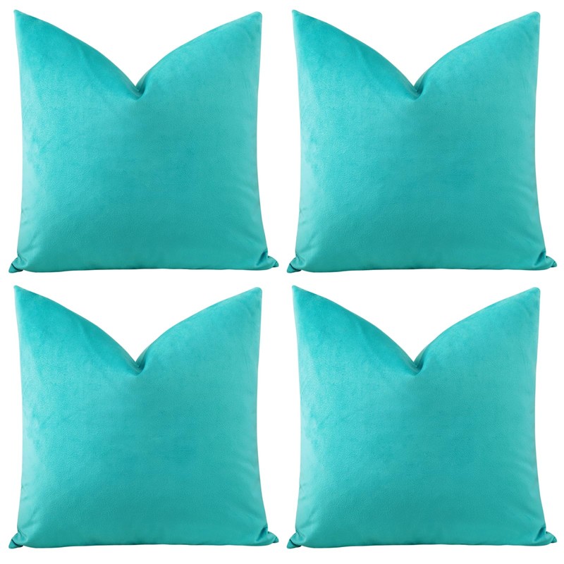OTOSTAR Set of 4 Decorative Throw Pillow Covers Soft Velvet Solid Square Pillow Cases Luxury Cushion Covers Case for Sofa Car Patio Bedroom Living Room 18x18 Inch, Teal