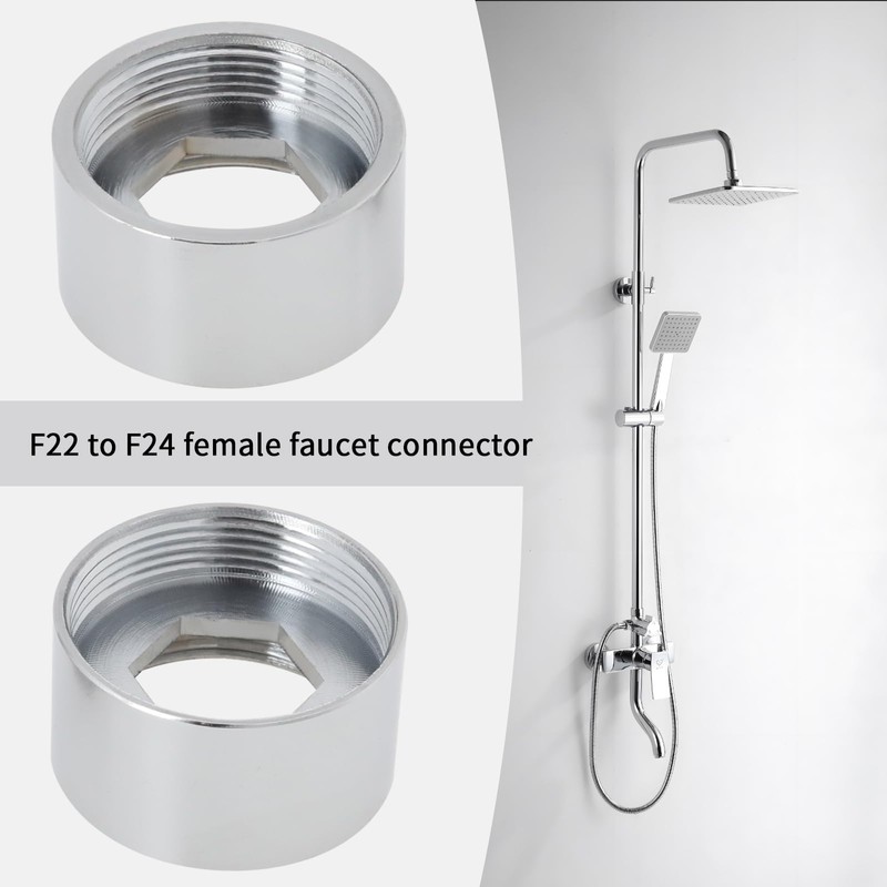 -Product size:The product includes female thread adapter and two types of washers. The size of the female thread adapter is 22mm Female Thread Adapter - 24mm Female, and the thickness is 14mm. The sizes of the two washers are 21mm outer diameter, 15mm inner diameter, 1.8mm thickness and 23mm outer diameter, 15mm inner diameter, 2.5mm thickness. Due to manual measurement, please allow 1-3mm error.