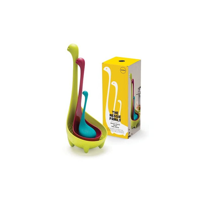 - 'Beasts' in the Kitchen- Have a blast in the kitchen with the Legendary Nessie family! Made by the Design Awarded OTOTO Studio, these nifty friends are kitchen essentials you never knew you needed! Meet Mamma Nessie the colander, Nessie the soup ladle, and Baby Nessie the tea infuser all in one set. More than just novelty items, OTOTO's kitchen tools and gadgets are best sellers because of their cute yet functional designs. Have a fun and 'kraken' time in the kitchen with these adorable beasts.