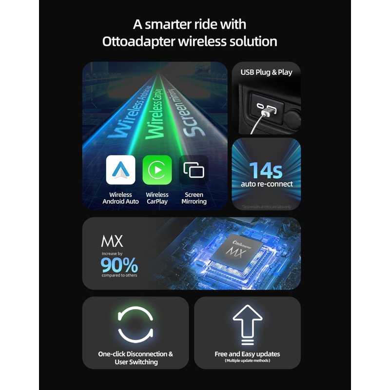 Ottcast Ottoadapter MX Wireless CarPlay/Android Auto 3-in-1 Adapter