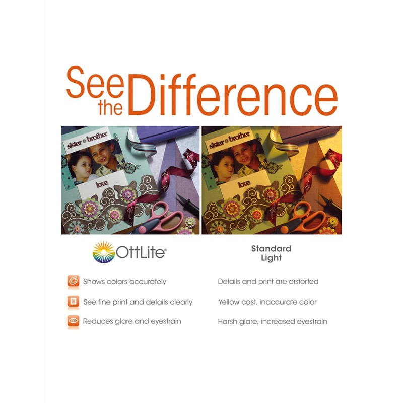 - NATURAL DAYLIGHT: OttLite’s engineers and researchers have focused on bringing the power of natural daylight indoors. OttLite’s unique daylight illumination shows colors accurately and details with amazing clarity and reduced glare and eyestrain.