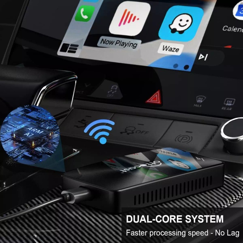 CarPlay Android Auto Wirele ss Adapter Play2Video multimedia box compatible with both Android and Apple phones,allows users to use both wireless Android Auto and wireless CarPlay functions on the original car wired CarPlay system, makes it easy to play music, get navigation, or make Hands -Free call. Sm art enough to recognize the model of your phone, making it a great choice for the whole family to use