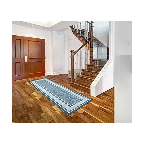 Ottomanson Ottohome Collection Contemporary Bordered Design Gray Non Slip Runner Rug, 1'10" X 7'0", Blue
