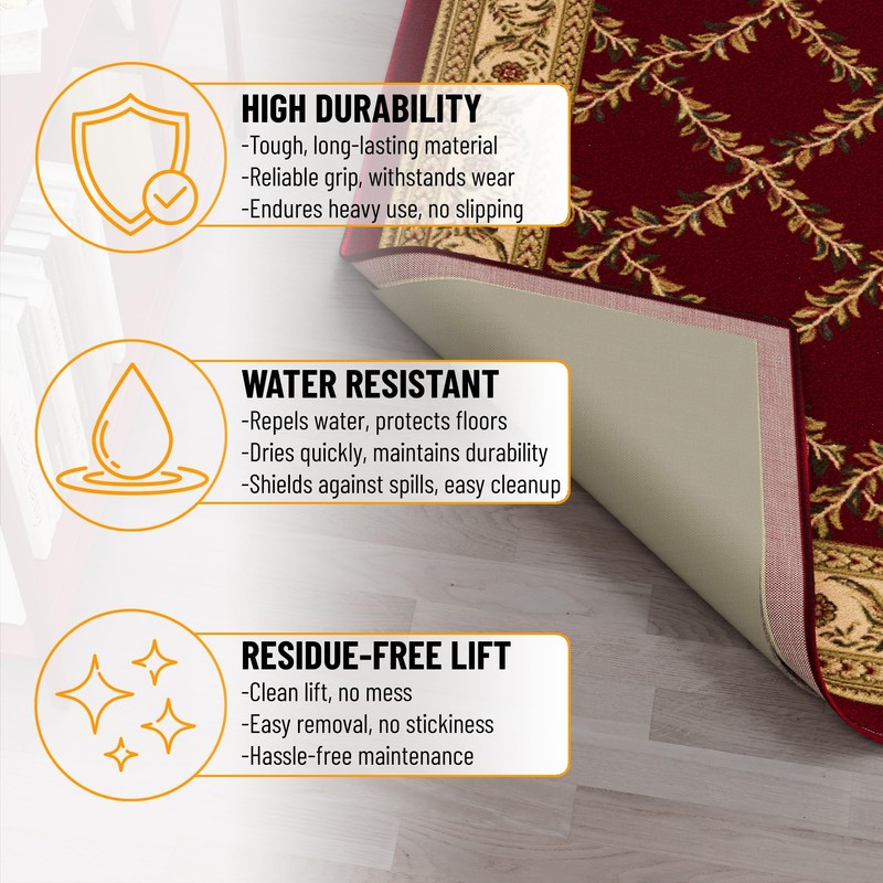 - [NON-SLIP BACKING]: Made with a dual surface backing of felt and rubber to provide strong grip on hardwood floors, tile, laminate, and other hard surfacesreducing movement, slippage, and bunching.