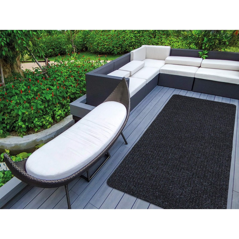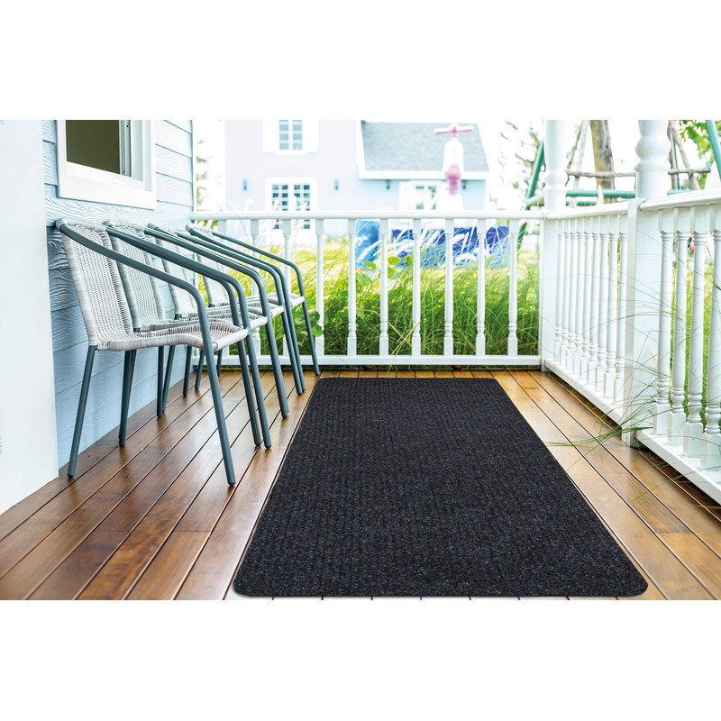Ottomanson Scrabe Rib Collection Waterproof Non-Slip Rubberback Solid Design 2x5 Indoor/Outdoor Runner Rug, 2' x 5', Black