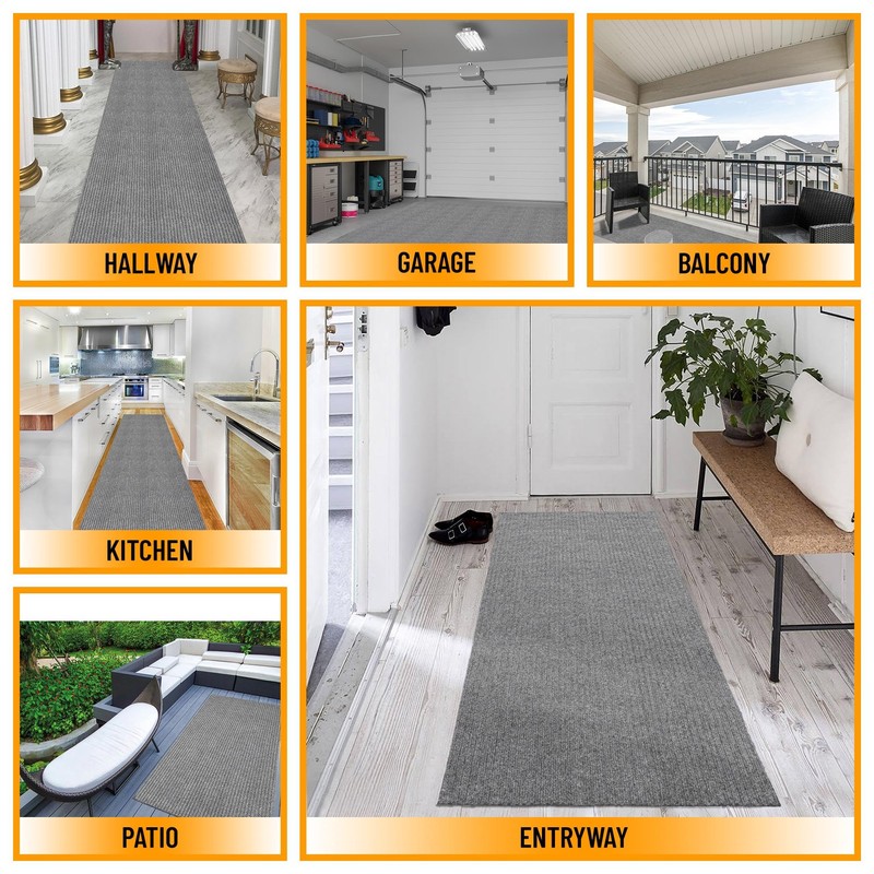 Ottomanson 2'7" x 9'10" Hallway Runner with Scraper Pile - Extra Durable Non-Slip Rug Mat for Indoor & Outdoor Use - Ideal for Kitchen, Entryway & Garage - High-Traffic Carpet, Gray