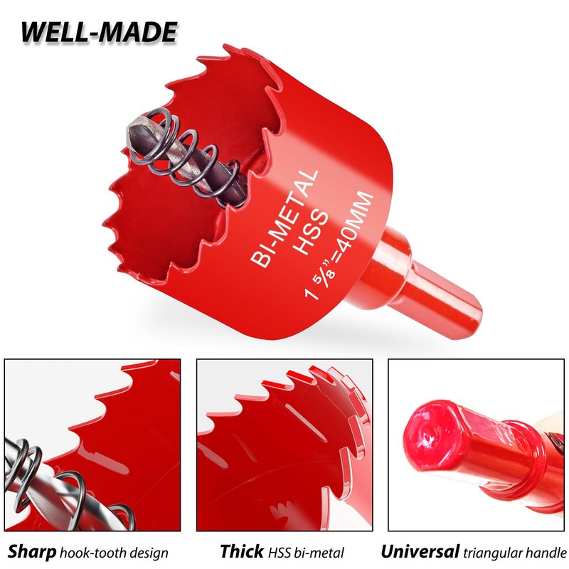 - Well made: the hook tooth design and drill bit side holes allow for quick and smooth removal of sawdust and high temperature gas, making the entire hole cutting process smooth and efficient with minimal vibration. This effectively reduces labor intensity