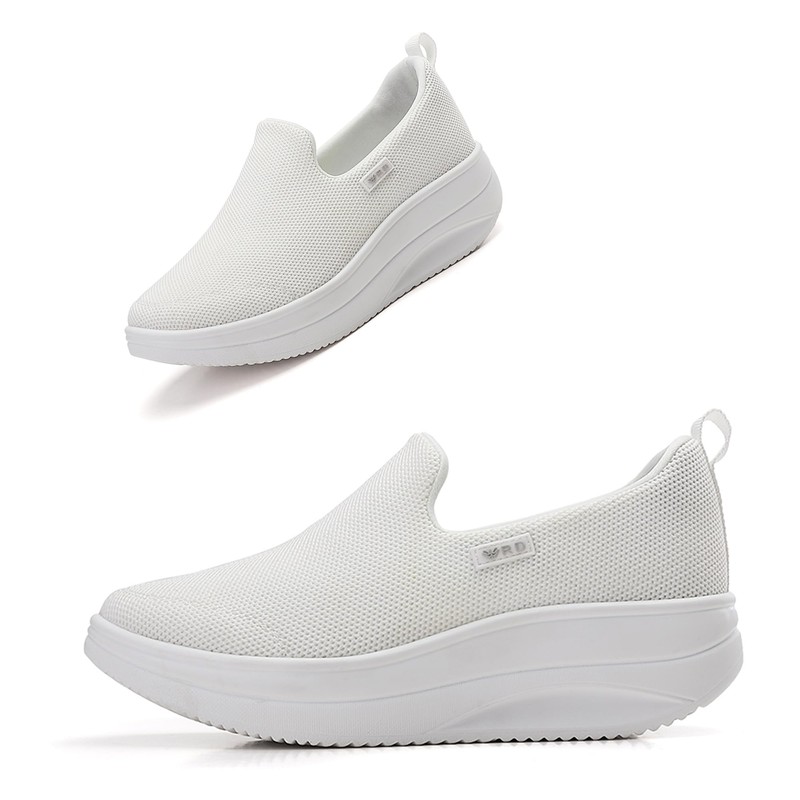 Oude Womens Platform Sneakers Comfy | White Orthopedic Shoes for Women Walking Out | 2 Inch Rocker Bottom Size 5