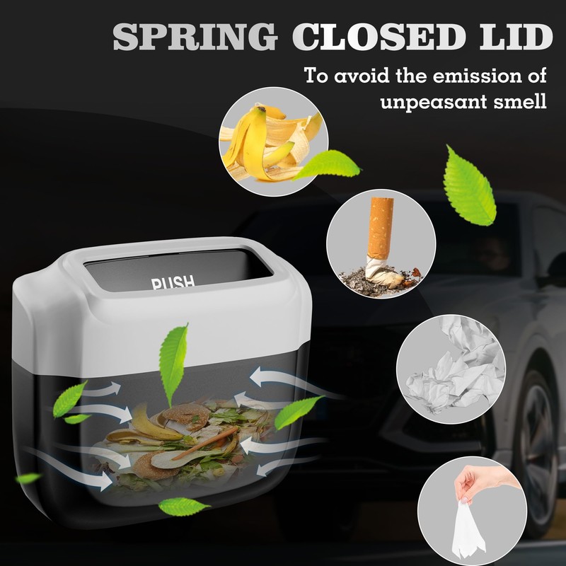 - 【Leakproof and Durable】Made from high quality ABS plastic, this car trash can is designed to be waterproof and leak-proof, ensuring that no spills or leaks will harm your car's interior. Say goodbye to the hassle of cleaning up after accidental spills and keep your car looking brand new.