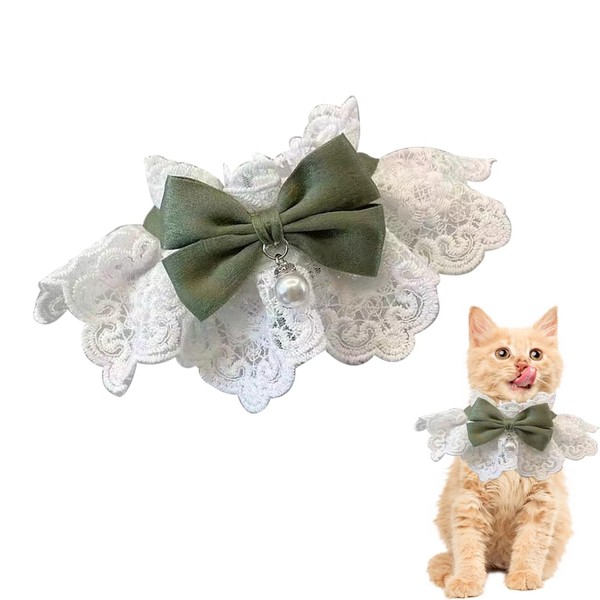 OUDQFCJ 1 Piece Cat Collars with Beads, Cat Collars with Bell, Adjustable Pearl Bow Tie Collars, Cute Collar Accessories, Green, M