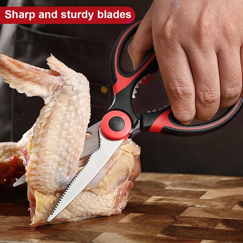 Versatile: Our kitchen scissors are versatile and can be used for a wide range of tasks in the kitchen. From cutting food to opening cans to cracking nuts, these scissors are a must have in every kitchen.