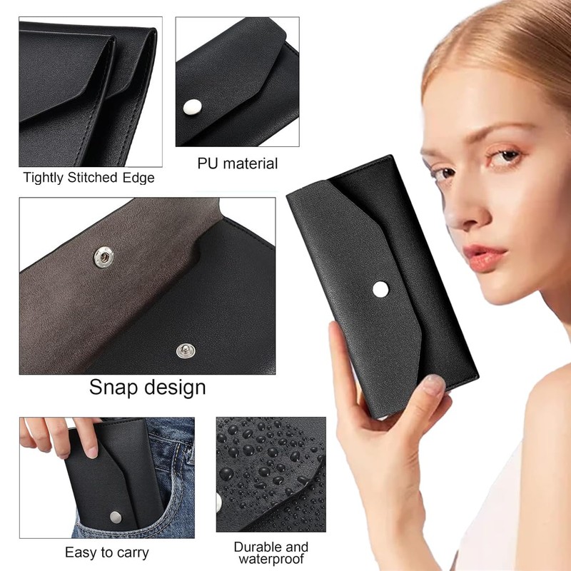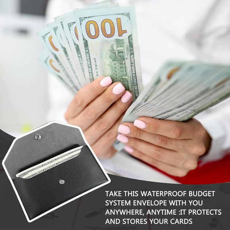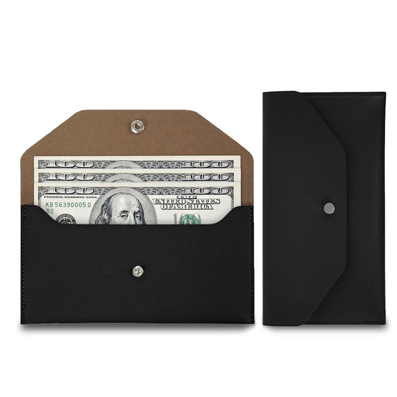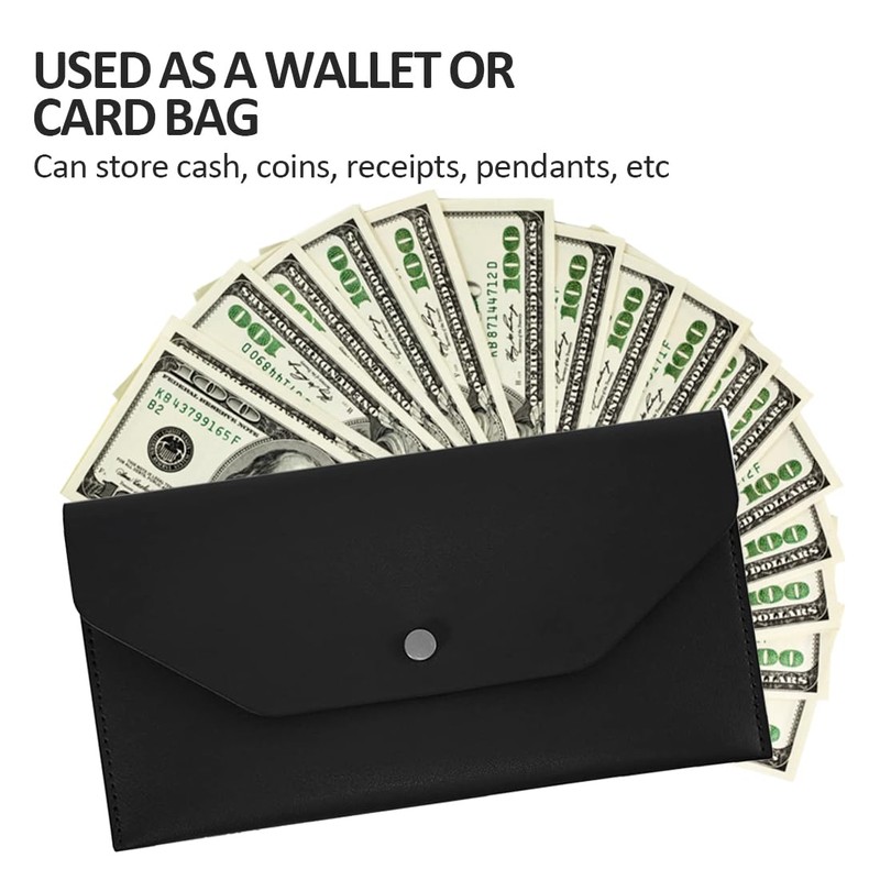 OUDQFCJ Leather Money Envelopes, Banknotes, Storage Envelopes, Purse, Reusable Money Envelope, Budget Envelope, Black Budget Wallet for Travel, Men, Boys, black