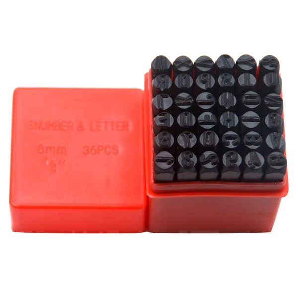 Oudtinx Number and Letter Stamp Set (36 Piece Punch Set/A-Z & 0-9) Hardened Steel for Metal Wood, Leather- 1/4" (6mm)