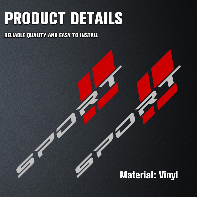 OUESAAS Sport Letter Logo Decal, 2 Pcs Sport Sticker Fit for All Cars Exterior Accessories (Silver Red)