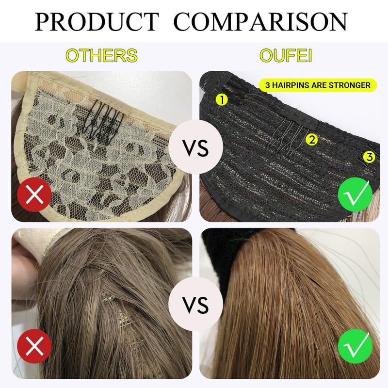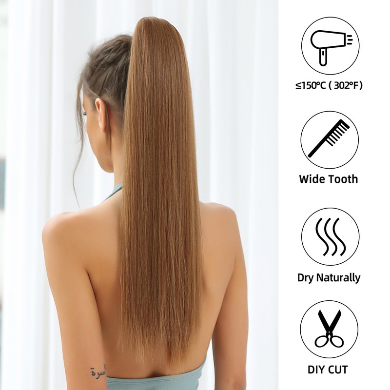 Ponytail Material: Made of 100% high quality Futura synthetic hair, imported from Japan. Its physical properties, appearance, colour and texture are very similar to real hair and looks just like real hair. High temperature resistance, can be used below 160°C (320°F) to change the hairstyle with curling iron.