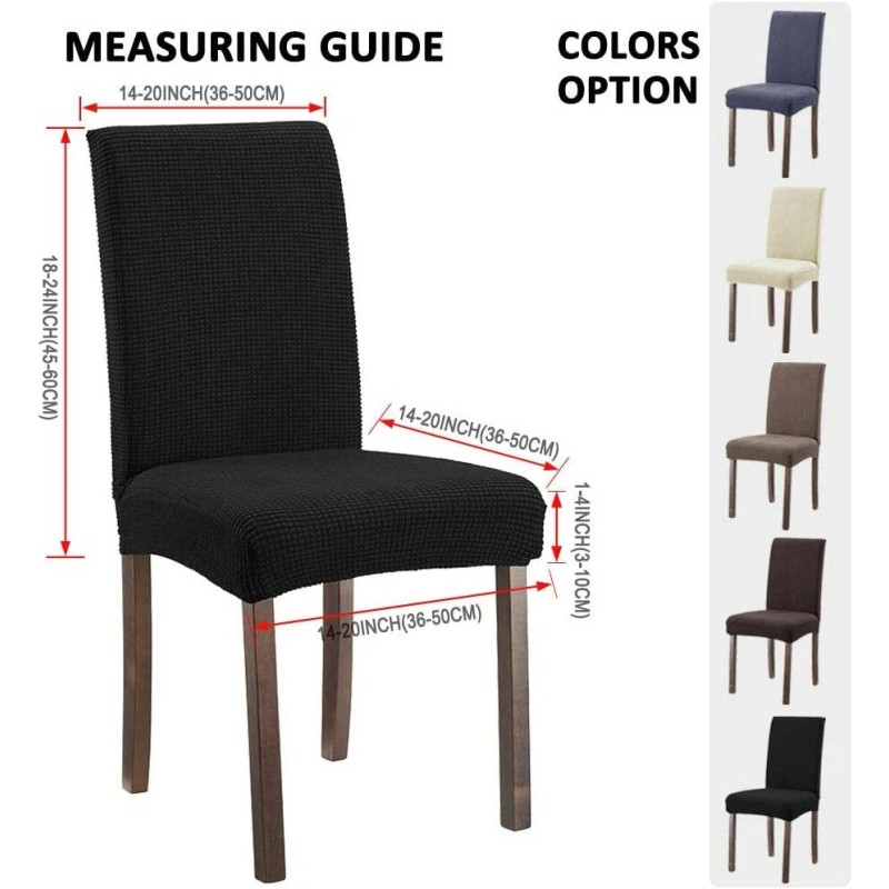 • 【Fit The Chairs in Different Size】Our stretch dining chair covers are one size designed to fit on different chair sizes, suitable for most of dining chairs and parson chairs. Please measure your chair carefully before purchase. Suitable for chair size range: Back Height 18-24inch(45-60cm), Back Width 14-20inch(36-50cm), Seat Length 14-20inch(36-50cm), Seat Width 14-20inch(36-50cm), Seat Thickness 1-4inch(3-10cm). Please refer to the dining chair slipcovers measurement guide on the image 4.