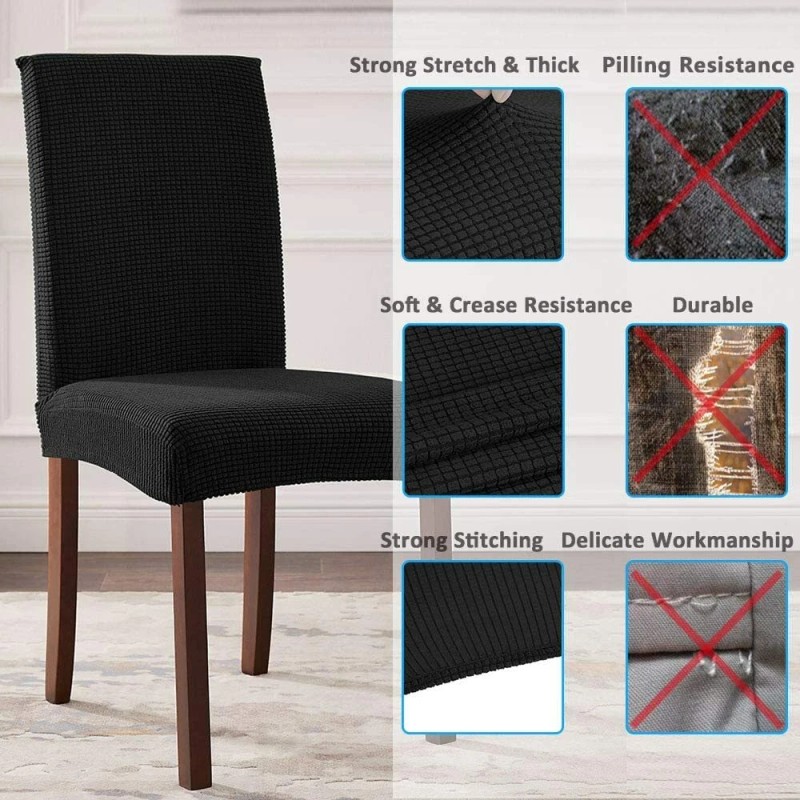 • 【Premium Material】The dining chair covers are thicker than normal chair covers, the fabric consists of 92% Polyester and 8% Spandex. Strong stitching and delicate workmanship. The chair slipcovers are very stretchy and durable, soft and comfortable. All chair covers sets are crease resistant, no ironing needed.