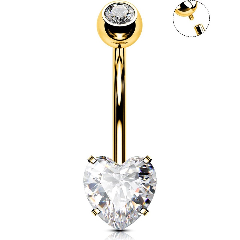 OUFER 14G Titanium Belly Button Bar 16mm Gold Belly Button Piercing Heart Bananabell Internally Threaded Belly Piercing Ring for Women Heart Belly Button jewellery