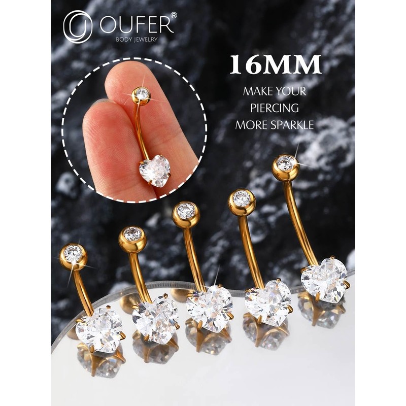 • Style of Belly Button Bar: One package include 1pc 14G titanium gold 16mm belly bar, heart-shaped clear cz, a piece of sophistication to elevate your look, adorn yourself with a touch of glamour and make a stylish statement.