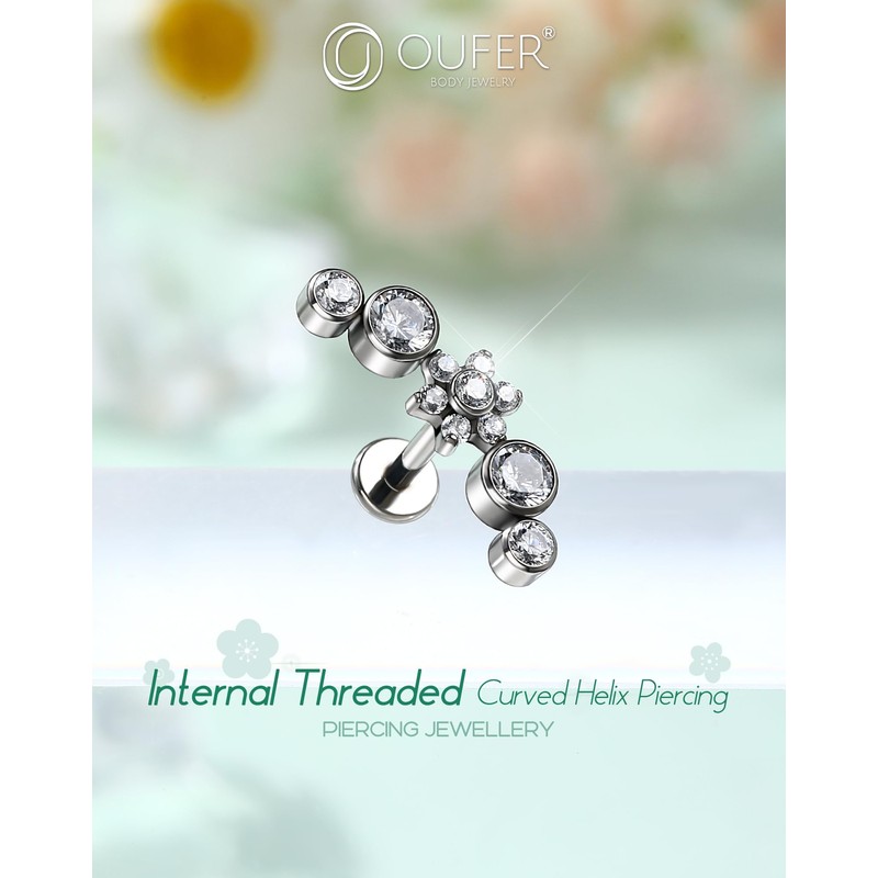 OUFER 16G Flower Conch Piercing G23 Titanium Curved Helix Stud Internal Threa...