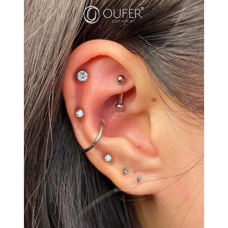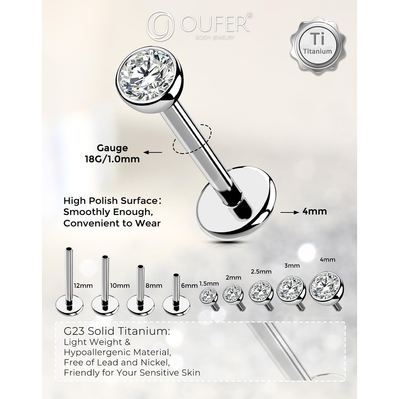 OUFER Body Piercing Internally 6/8/10/12mm Tragus Earring 18G Labret Piercing Jewellery Titanium Helix Stud Conch Lobe Nose Lip Stud Bars Flat Back Earrings