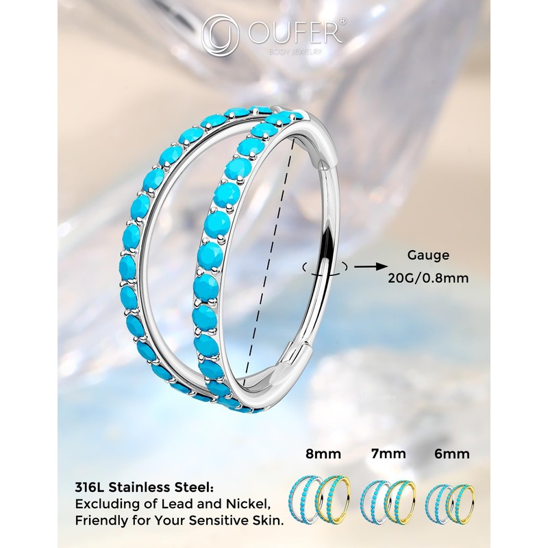 OUFER Body Piercing Nose Hoop Rings Hinged Clicker Segment Helix Hoop Ring 20G 316L Stainless Steel 6/7/8mm Nostril Conch Daith Helix Tragus Snug Rook Cartilage Piercings