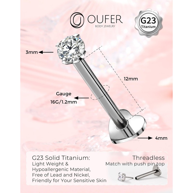 - The package includes 1pc 16G titanium threadless lip stud with clear CZ
