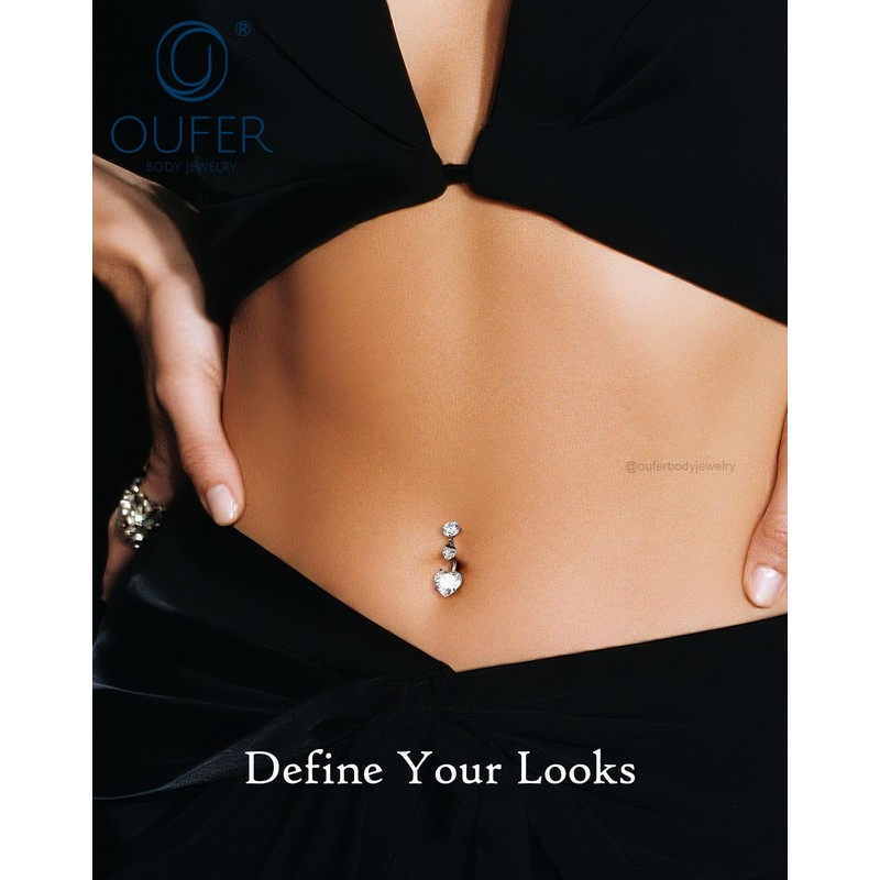 - Elegant Heart & Round Zircon Navel Ring - This stunning belly button jewelry features a dazzling combination of round brilliant-cut and heart-shaped cubic zirconia stones, creating a romantic and eye-catching belly ring perfect for everyday wear or special occasions. The elegant design adds a touch of sparkle to your navel piercing.