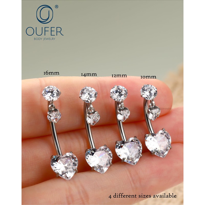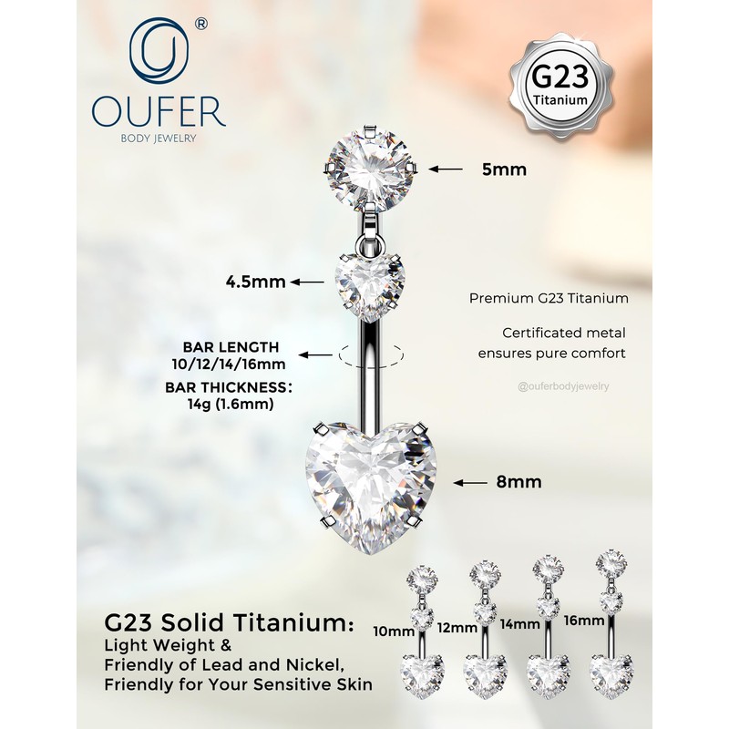 OUFER G23 Titanium Belly Button Rings, 14G Internally Threaded Belly Rings for Women, Heart Dangle Navel Piercing Jewelry 12mm