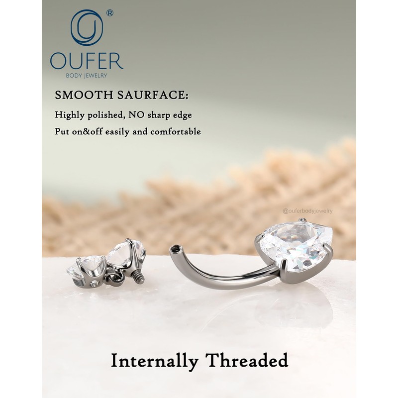 - Secure Threaded Curved Barbell Design - Features a high-precision internally threaded curved barbell with smooth threading for easy jewelry changes and secure wear. The 14G (1.6mm) thickness is the perfect standard gauge for most navel piercings.