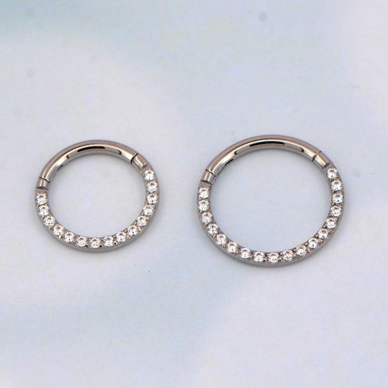 OUFER Titanium Daith Earring Hoop Solid G23 Cartilage Tragus Helix Rings 16G Titanium Septum Piercing Jewelry Hinged Segment Hoop with Clear CZ Paved 8mm