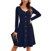 OUGES Womens Fall Long Sleeve Midi Dresses Button Down V Neck Skater Dress with Pockets 2025(Navy,L)