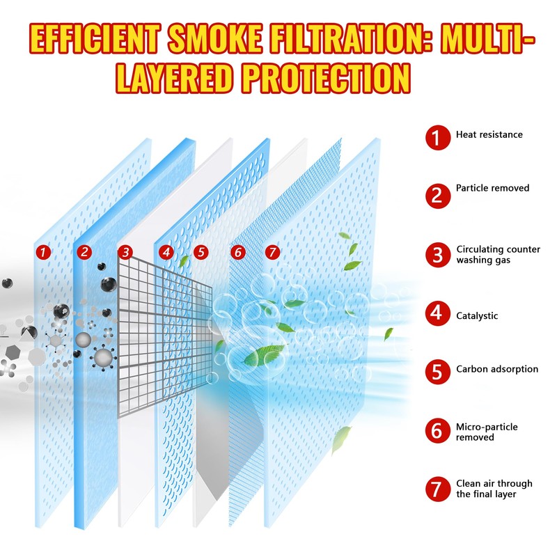 - 【ADVANCED SMOKE SEAL】 Triple-layer silicone seals integrated with fireproof framing deliver exceptional edge-to-face adhesion. Tested in extreme smoke environments, the design prevents smoke infiltration through reinforced structural contact points—ensuring reliable protection without compromising breath ability.