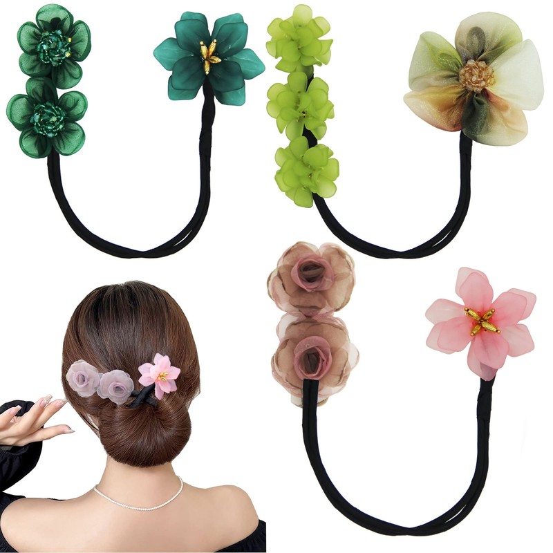 - ☀Each order includes: 3PCS Delicate and Elegant Flower Hair Bun Maker, Elegant Flower,Brand New Two-End Design, Will Make You Love It;
