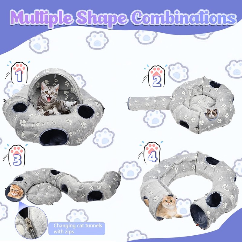 • ฅฅMultiple Shape Combinations - Zipper separation design can be turned into circular, S-shaped, cat donut tunnel or any other shape you like. Add an extra tunnel to the cat to allow your pets to have a longer runway and more places to hide.More peekaboo cat caves can allow multiple cats to play together, increasing the fun of playing.