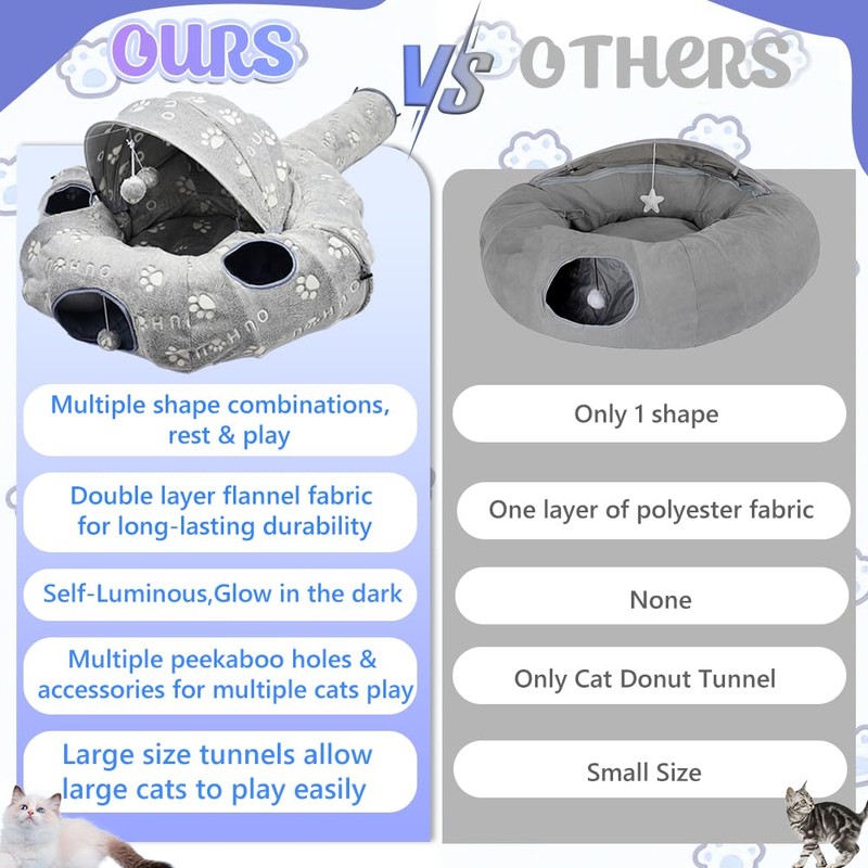 • ฅฅ2 In 1 Designed - OUHOU cat tunnel bed is a combination of cat bed and cat circle tunnel,to meet the needs and desires of pets to play, hide, relax and sleep.