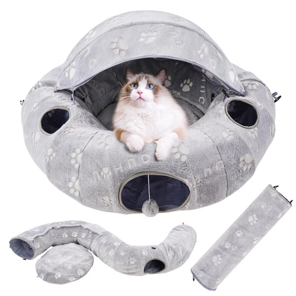 OUHOU Cat Tunnel Bed, Cat Tunnels for Indoor Cats, Cat Donut Tunnel with Extr...