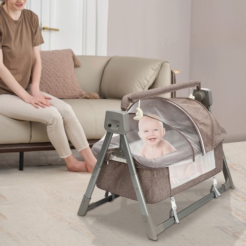 OUKANING Portable Electric Baby Swing Cradle Bassinet Rocking Crib Infant Bed Cradle New