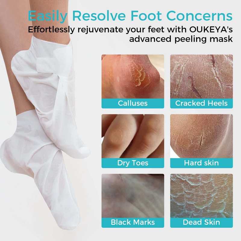 OUKEYA 4 in 1 Foot Peeling Mask : Peeling Foot Mask Dermatologically Tested Repairs Heels & Removes Dry Dead Skin for Baby Soft Feet Exfoliating Foot Peel Mask for Dry Cracked Feet Combo 4 Pack