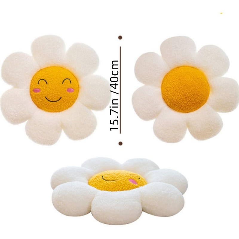 - MATERIAL : Sun Flower face Stuffed Pillow Cushions ,consists of high quality short plush and PP cotton filler, clean seams. Soft and cozy, no odor found, can be washed.This Cute Flower Cushion Chair Pillow is a good stress reliever and sleeping partner.