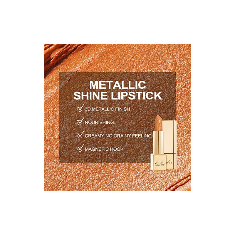 OULAC Lippenstift Metallic Glanz Finish, Orange Glitzer Lippenstift mit Lang Anhaltendem 3D-Glanz, Intensive Farbe, Cremige und Feuchthaltende Formel, Vegan, 4.3g, (19) Persimmons